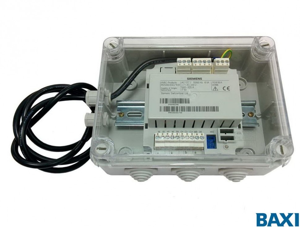Может использоваться в системах с котлами, установленными в каскаде до 16 штук, с приготовлением ГВС через бойлер. Подключается к одному из котлов, управляет 3 независимыми релейными выходами, 2 датчиками температуры, имеет 1 вход для подключения термостата бойлера и 1 управляющий вход. Поставляется в белом корпусе с прозрачной крышкой. В комплекте поставки 1 датчик QAD36.