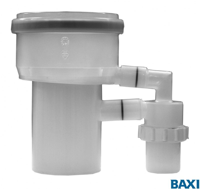 Используется для настенных и напольных конденсационных котлов мощностью до 70 кВт. В присоединительном патрубке установлен обратный клапан, который не позволяет переток дымовых газов от работающего котла к выключенному котлу. При этом, предусмотрен конденсатоотвод через гидравлический затвор.