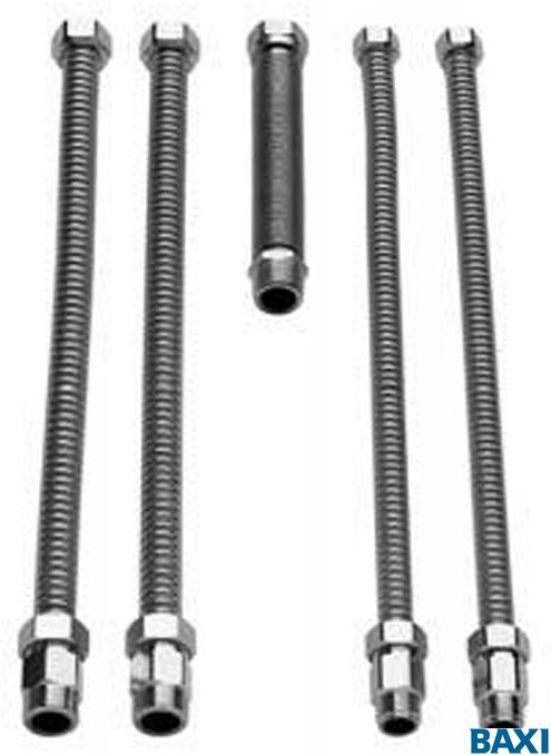 В комплект поставки входят универсальные подводки из нержавеющей стали. Комплект часто используется при замене котлов других производителей